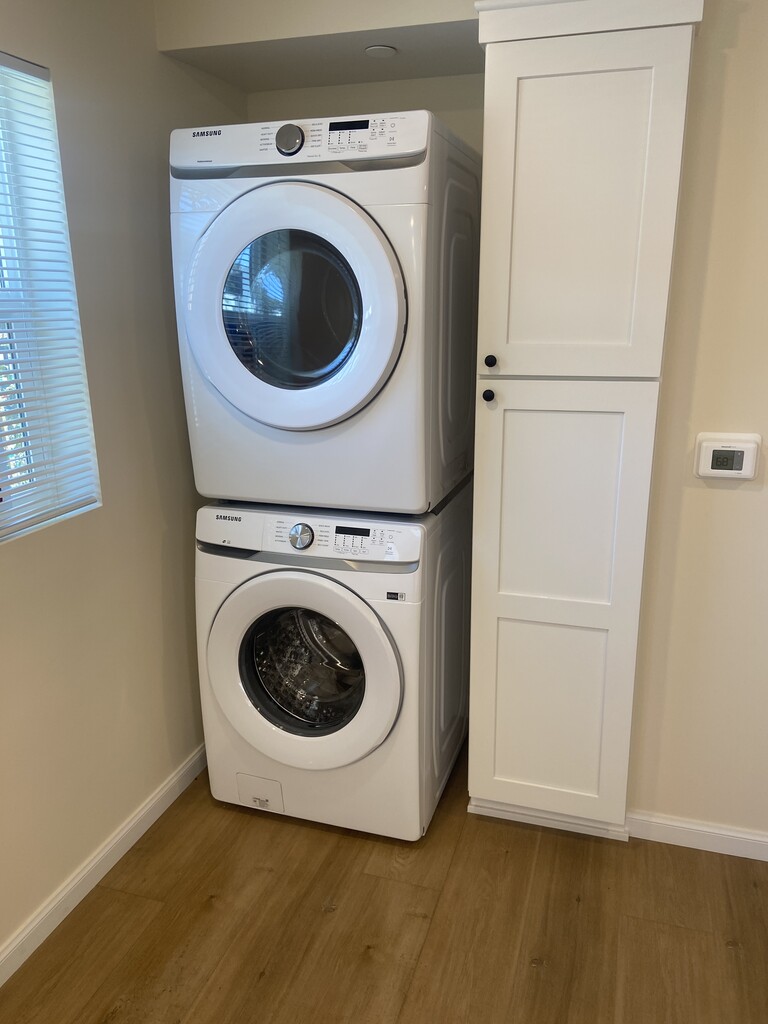 New Construction, Each unit comes with Samsung appliances: Refrigerator, Microwave, Dishwasher, Oven/Range, Washer/Dryer. This is a 3 Bedroom 2 Bath unit, Wood Floors throughout, Walk in showers in both bathrooms. Onsite parking. Secured building