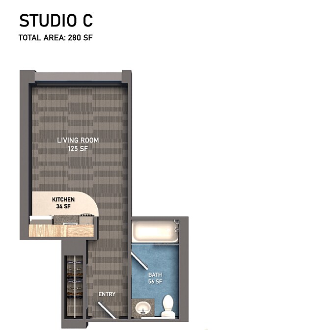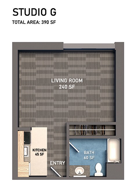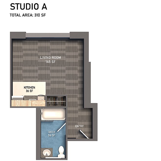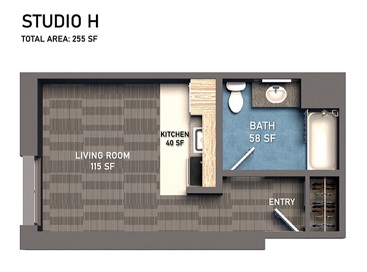 Studio, 1 Bath, 230 sq ftAvailable NowModel Gallery