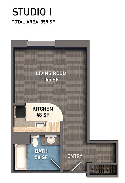 Studio, 1 Bath, 231 sq ftAvailable NowLargest StudioThis is the largest Studio at this PropertyModel Gallery