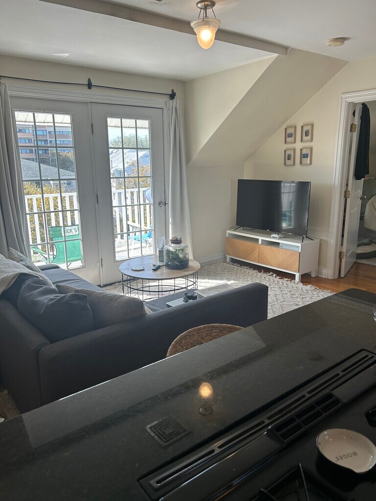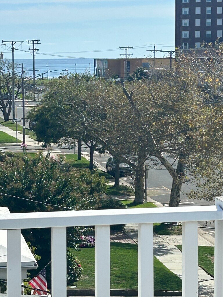 Renovated 2 bedroom 2 bath sun-drenched cozy 3rd floor apartment. Enjoy the ocean views and salt air breezes from your own private deck. 5 minute walk to beach and boardwalk. Open floor plan, en-suite bath, central air, granite countertops, stainless steel appliances, and washer dryer in unit. Private entrance and parking for one car available in rear parking lot. Available November 15th for one year lease. Pets are welcome! Owner pays water and sewer. Tenant pays gas and electric. No smoking.