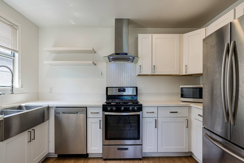 Stylish, Private gated 3 bedroom/3 bathroom home located just blocks away from the beach and Abbot Kinney's shops and restaurants. The home welcomes you as you are drawn into the natural light in the living room with large windows, gleaming hardwood floors and a lovely outdoor patio to decompress. The remodeled kitchen, with newer counter-tops, newer stainless steel double sink, and stainless steel appliances is the home chef's delight. Enjoy the master suite with a spacious master bath, walk in closet, private patio and a separate entrance to the backyard. All bedrooms are separated from each other and have their own bathrooms.This home includes a washer and dryer, generous closet space, plus a 2 car garage (studio or office) & 2 gated driveway parking spaces and storage space. The front patio is perfect for dining al fresco and the backyard has a beautiful full orange tree.
