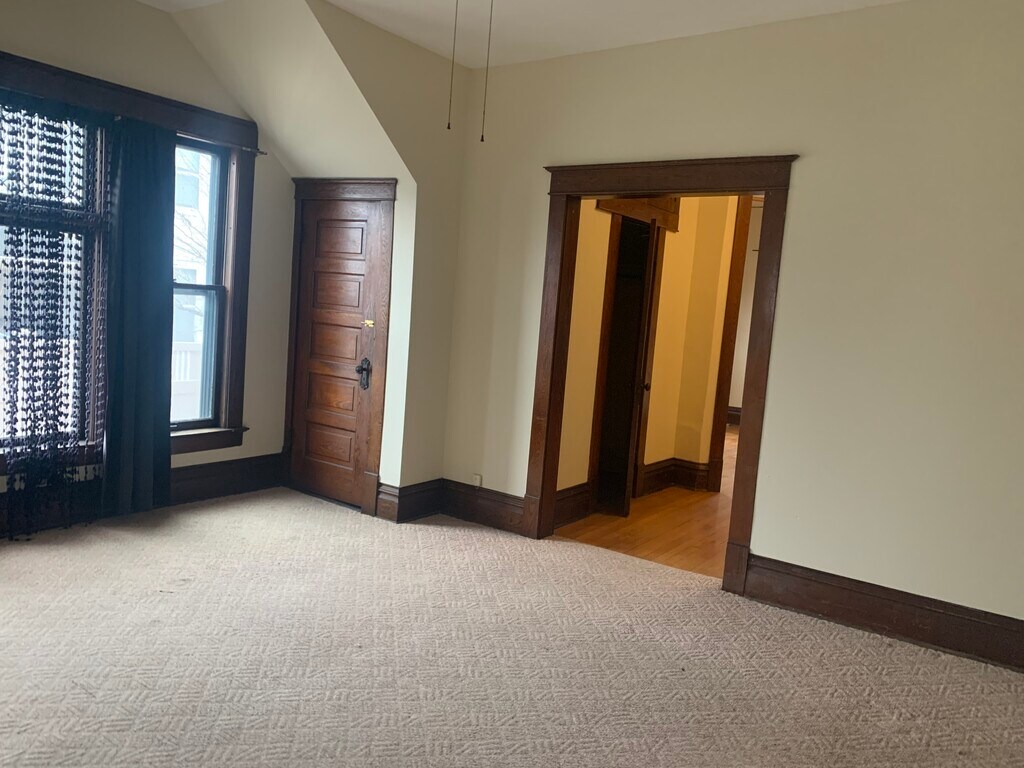 This is a first floor unit in townhome style units. There are hardwood floors in some of the unit, a decorative fireplace, and beautiful woodwork in the unit. One off-street parking spot. Washer/dryer hook-ups in the basement. Rent includes lawn care and snow removal.