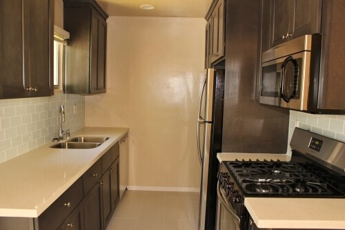 Newly remodeled front corner unit with laminate flooring throughout, washer & dryer, quartz counter tops and stainless steel appliances. the building has a laundry room and the unit comes with 1 parking space. Pet ok with an extra $350 deposit per pet .