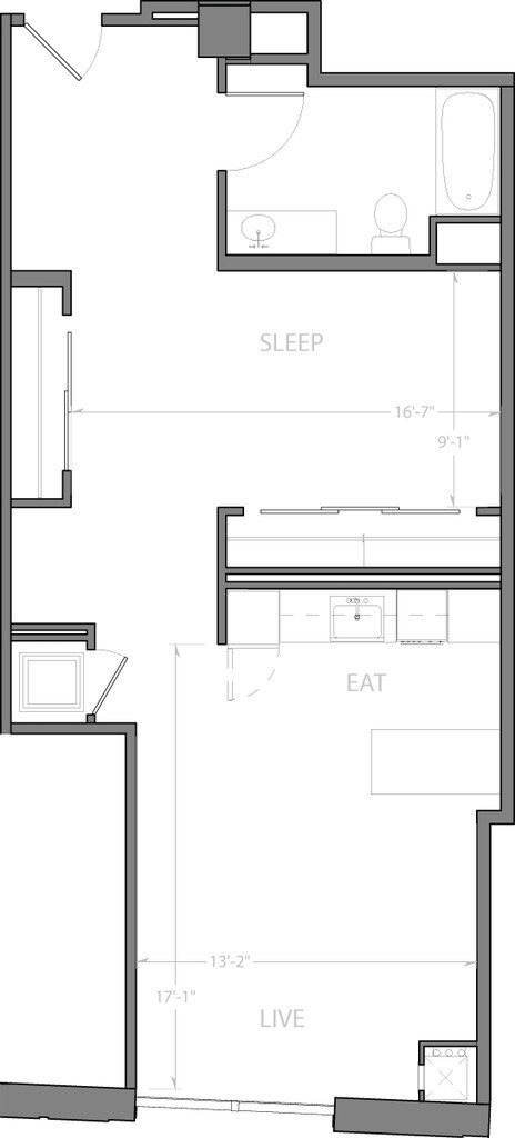 Studio, 1 Bath, 601 sq ftModel Gallery