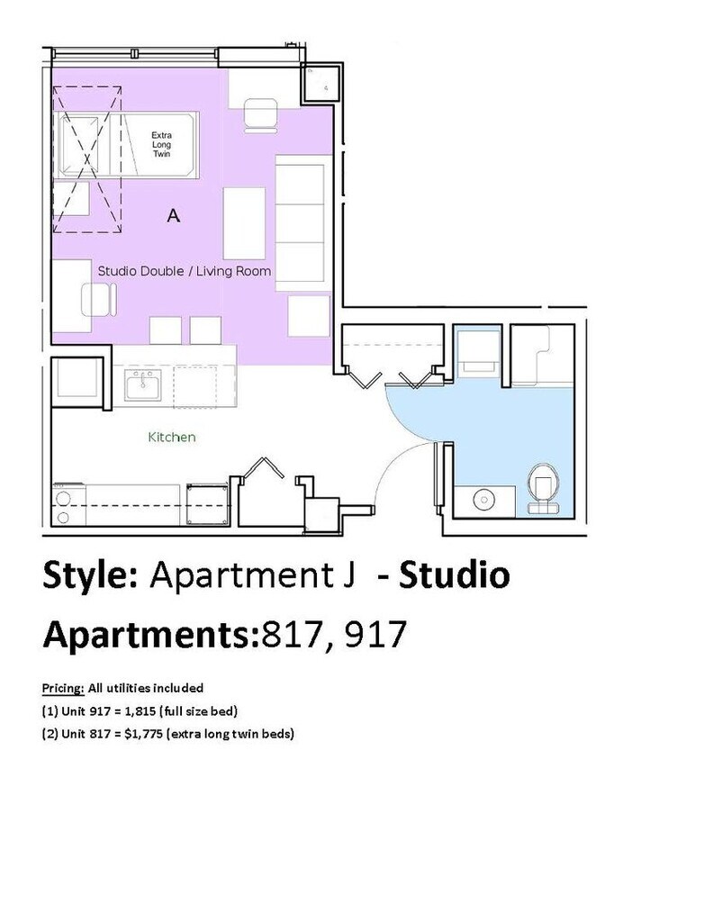Apartment Unit: 917 - AApartment Model: 0BR/1.0BA$1,350Studio, 1 Bath, 429 sq ftAvailable November 21, 2025![]()