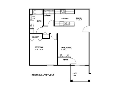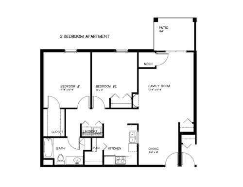 Apartment Model: Two Bedroom2 Bedroom, 1 Bath, 1025 sq ftUnavailable![]() - Two Bedroom - Floorplan 1