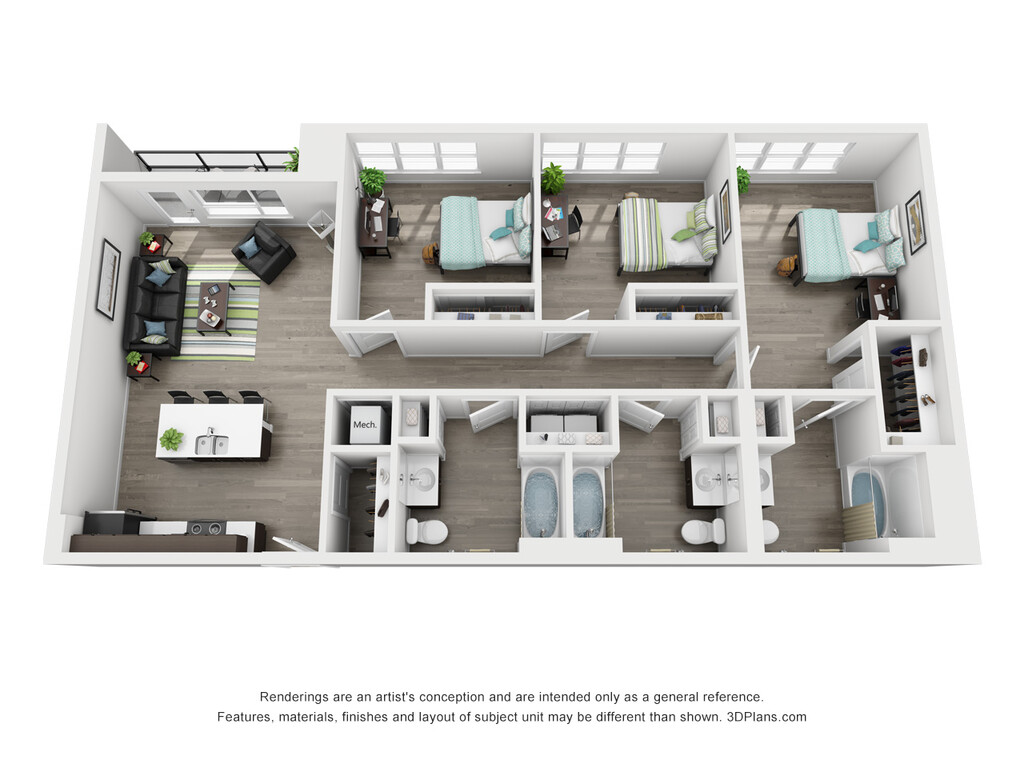 3 Beds, 3 Baths, 1306-1374 sq ftLargest 3 BedroomThis is the largest 3 Bedroom at this PropertyAvailability Details
