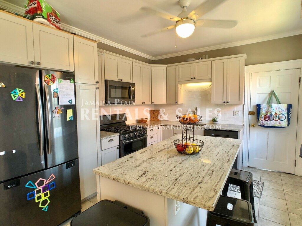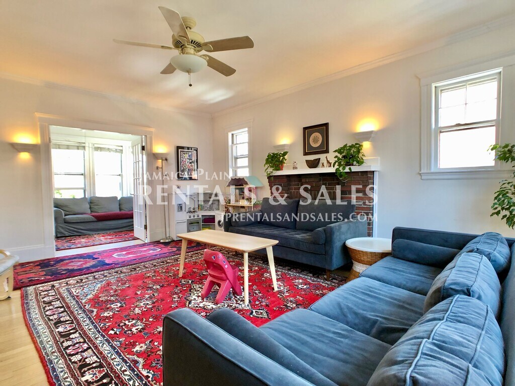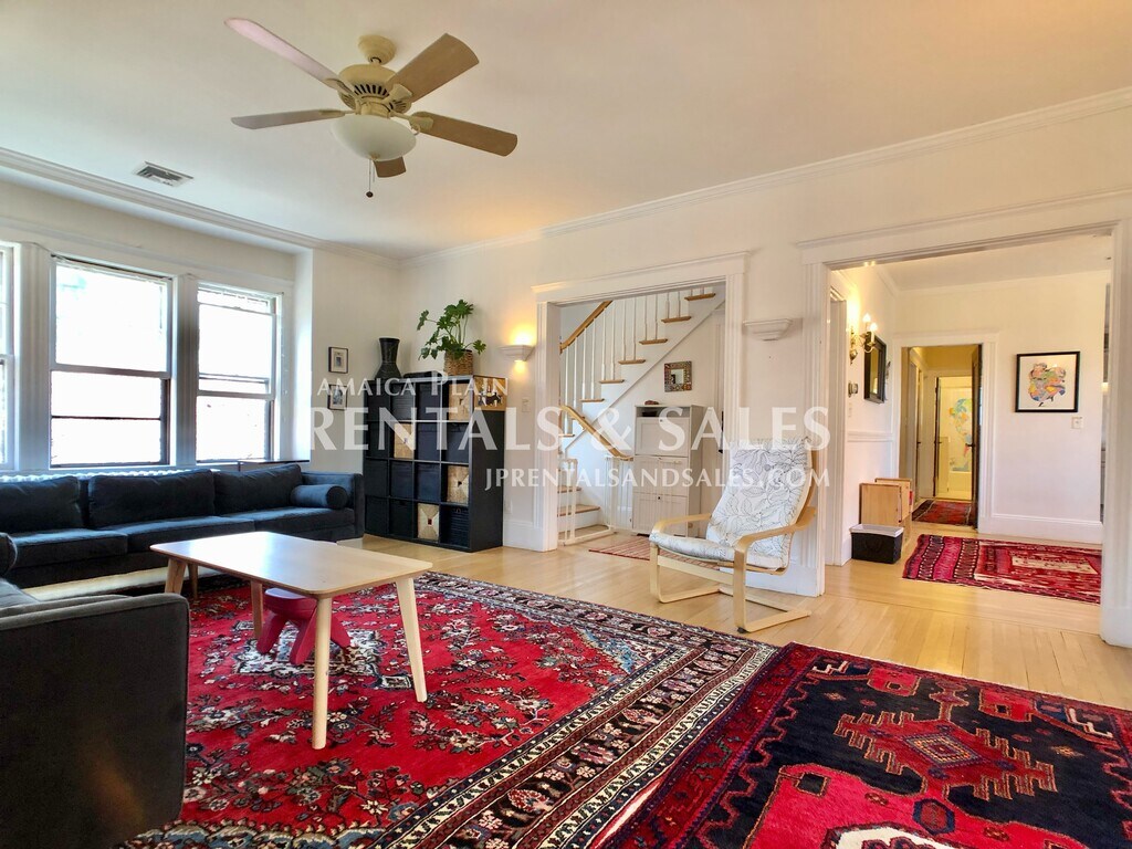 Available September 1 - This stunning pondside 3 bed 2 bath has it all! The apartment is located on a quiet street next to Jamaica Pond and includes two levels of living space. The first floor features a large living room with decorative fireplace, spacious sun room/office, updated kitchen with granite counter tops and big island w/breakfast bar, separate dining area, two bedrooms and a full bath. Upstairs is a huge bonus room as well as a master suite with full size washer and dryer. All rooms have ceiling fans and tons of natural light, and the entire space has central AC as well. There is a private porch off of the kitchen, and a huge basement storage area. There is one off street parking spot and one garage bay included in the rent. The location is ideal for commuting as well, with the Longwood medical area just a few minutes away, and the 39 bus at the end of the street. All the amenities of Centre st like Wholefoods, CVS, great coffee shops and restaurants are all just a block away. Call or email us today to schedule a tour. FIRST, LAST, NO BROKER FEE DUE WITH LEASE. PETS NEGOTIABLE
