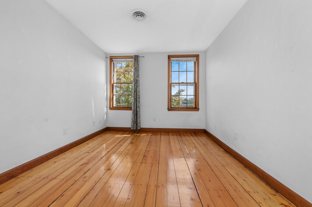 Bright and spacious floor-through 3BD apartment featuring central air, a new kitchen, and a private deck. The home offers three bedrooms with generous closet space, in-unit laundry, and additional basement storage. Highlights include a recently updated bathroom, original hardwood floors, tall ceilings, and oversized windows that flood the space with natural light. Enjoy the privacy of a top-floor unit on a charming Charlestown street near to Parks, public transit, and the shops and restaurants of town. Easy street parking by resident sticker! Available 9/1.
