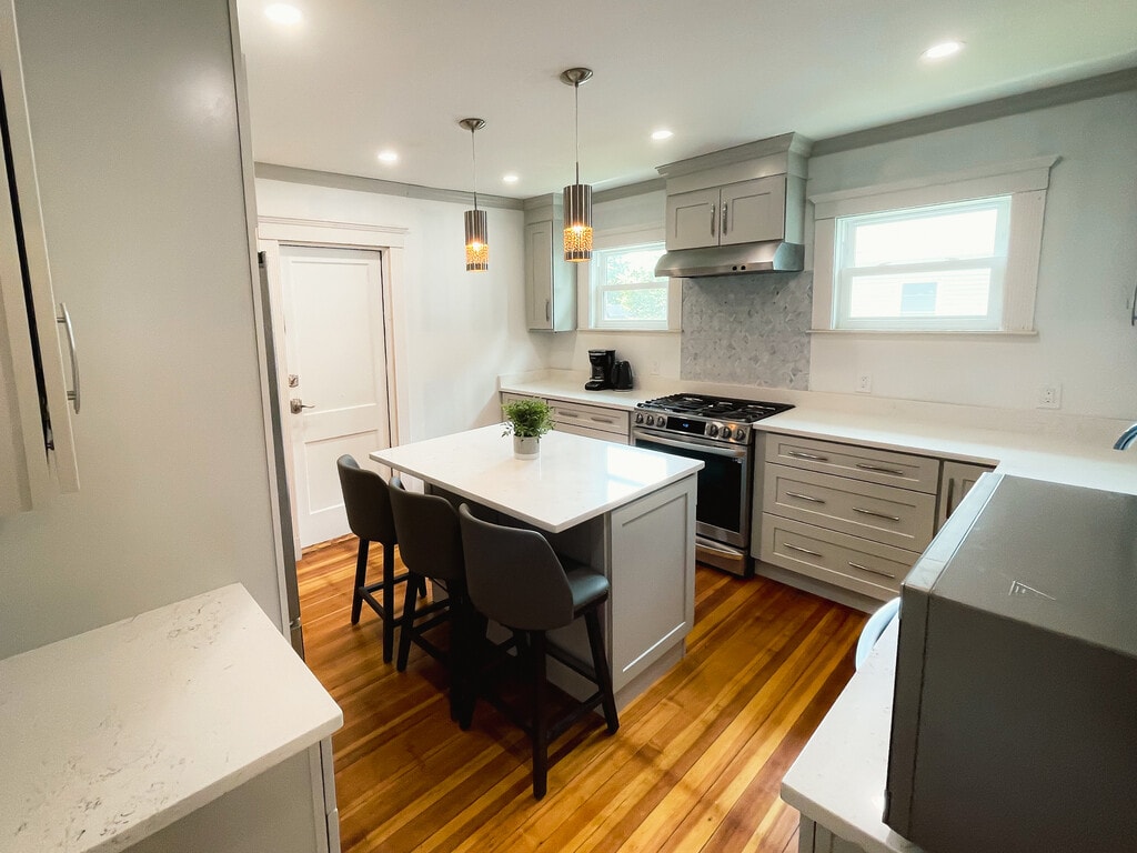 This is a beautifully Luxury remodeled 2 bedroom,1 Bathroom apartment located on the first floor, half mile away from Norwood center. Features include Hardwood floors throughout, in-unit laundry, ample closet space, a new bathroom, a new custom kitchen with a center island, stainless steel appliances and quartz countertops and off street parking. Access to all the great restaurants and shopping close to downtown of Washington Street, as well as less than a block away from Norwood High School and other public schools near by. Along with public transportation / Commuter rail just a short distance away. 32-34 West St is an apartment community located in Norfolk County and the 02062 ZIP Code.