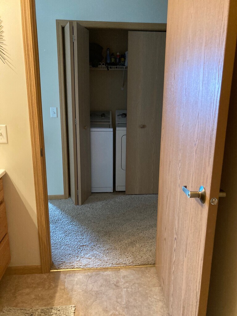 Very nice and well-maintained Townhome Style 2BR Apartment in beautiful St. Croix Falls, WI. Just a few minutes from Taylors Falls, MN and Osceola, WI. Only 1 hour from Twin Cities! This pleasant 936 sq ft 2nd floor apartment includes an attached 1 Car Garage w/ Opener, In-Unit Washer/Dryer, In-Unit Water Heater, A/C, Dishwasher, Microwave, Range, Refrigerator, Private Entrance. Carpeted flooring throughout and laminate in kitchen and there is a small patio. Tenant pays all utilities including heat (electric), electricity, water/sewer, trash and snow removal on their own driveway and sidewalk. 1-year lease required. $1,149 per mo & $1,149 Sec Dep. Income 3X rent. No Pets. No smoking in building. Good credit min 650 required. No prior eviction or felony.