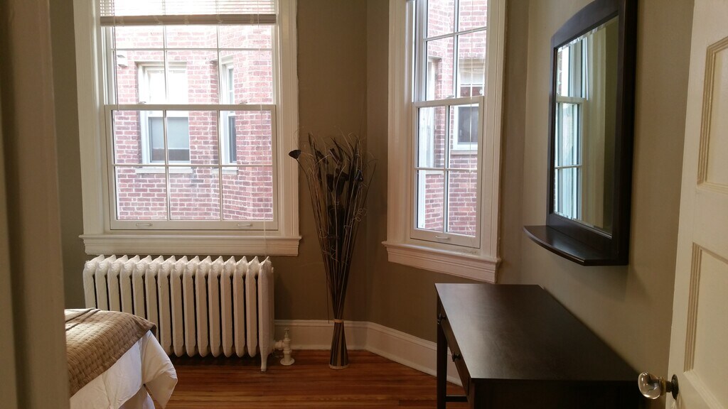 This spacious and beautiful one-bedroom, one-bath apartment is located in the heart of Mt. Pleasant, just seconds from neighborhood shops and only a ten-minute walk to the Columbia Heights Metro station (Green Line). Several major bus lines are also just one to three minutes away, offering quick and easy access downtown and across the city. The apartment features a large kitchen with a full-size refrigerator, hardwood floors with area rugs, a ceiling fan in the living room, a working fireplace, and oversized windows, including two elegant bay windows that fill the space with natural light. Off the living area, a screened-in porch with seating offers a comfortable spot to relax and enjoy the neighborhood atmosphere.The living room, complete with a door and a pull-down Murphy bed, can also serve as a second bedroom for guests. A rollaway bed is included, along with three spacious closets, including a walk-in closet in the bedroom. The home also includes the convenience of an in-unit washer and dryer. For year-round comfort, the apartment is equipped with three Mitsubishi ductless A/C units and central heating. Tenants have access to the building’s common areas, including the welcoming lobby, a backyard with patio seating and a barbecue, and a laundry room. Water and central heating are included in the rent. Available October 1st, 2025, this apartment combines space, comfort, and convenience in one of DC’s most desirable neighborhoods.