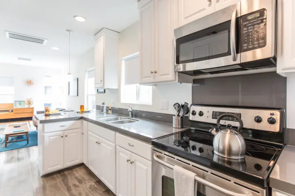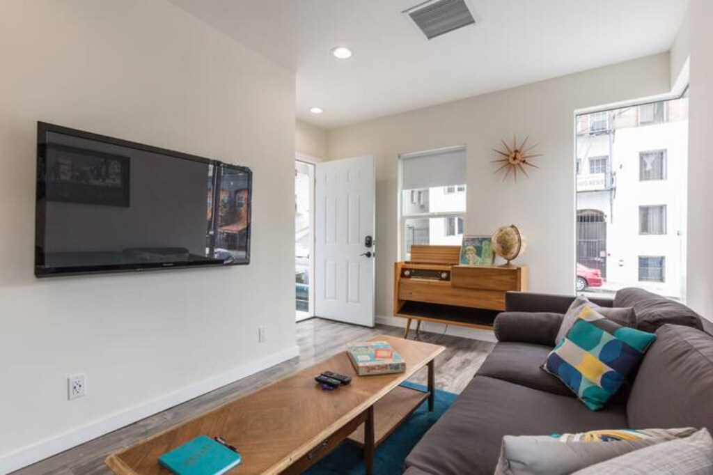 Pros: -Super walkable neighborhood near cafes, shops & markets -Pet-friendly for your furry travel buddies -Fast, reliable Wi-Fi for work or streaming -A/C & heating for year-round comfort -Fully stocked kitchen with all the essentials Cons: -Street-facing and behind a car wash—expect some noise -No reserved parking; street parking only -No washer/dryer in unit ; 10 min walk/2 min drive to laundromat -Duplex—there’s a unit below -No outdoor space If I were to review this apartment, here’s what I’d say: "I had a great stay at this Silverlake apartment! It’s part of a duplex on a slight slope — the unit is on the ground floor, and while there’s another unit below, I still had plenty of privacy. The corner window in the living room let in a nice amount of natural light and was perfect for people-watching while sipping my morning coffee. The location is ideal for anyone who wants to live like a local. There are great restaurants, bars, and shops within walking distance, and the neighborhood has a creative, lived-in vibe. Just be aware that the apartment is street-facing and next to a car wash, so you’ll hear some noise. Parking is street-only, so it can take a few minutes to find a spot. There’s also no washer/dryer in the unit, but a laundromat is just a short walk away. Both bedrooms had incredibly comfortable queen-sized memory foam beds — seriously, I slept so well. The kitchen had everything I needed: gas stove, full-sized fridge, Keurig, toaster, and good countertop space. I didn’t cook much because of all the nearby food options, but it was nice to have the option. Wi-Fi was fast and dependable for work and streaming. The living room is on the narrow side, but still cozy and functional, with some mid-century touches that gave it a stylish feel without being overdone. If you want to stay in a walkable, creative LA neighborhood and feel like you’re part of the scene, this is a great place to land." Looking for a comfortable place in one of LA’s most creative neighborhoods? This ground-floor Silverlake apartment is perfect for mid-term stays, with restaurants, shops, and cafés just blocks away. BEDROOMS Each bedroom includes a plush queen-size memory foam bed to help you sleep soundly. Thoughtfully designed for comfort and rest. Large closets allow you to comfortably store your belongings and provide a sense of home away from home. BATHROOM You’ll find everything you need to refresh: a full bath, towels, shampoo, soap, hair dryer, iron, and ironing board. KITCHEN Fully equipped with a gas stove, full-size fridge, Keurig with K-cups, toaster, pots, pans, and all the essentials for cooking (or heating up leftovers from down the street). LIVING ROOM The narrow but charming living room gets natural light through the corner window — a perfect nook for relaxing or people-watching. Includes Roku smart TV and fast Wi-Fi throughout the space. Book now and experience Silverlake like a local!