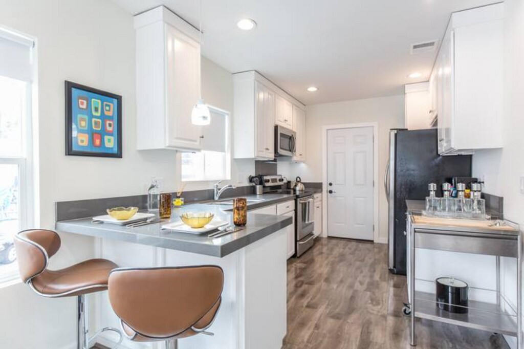The property is located in Silver Lake, a well-known and trendy neighborhood in Los Angeles. The neighborhood is described as “super walkable” with cafes, shops, and markets nearby. Because it’s in a more urban area, you may find some street noise, especially as the unit is street-facing and behind a car wash, according to one listing’s notes. There’s no reserved parking for the unit; occupants likely rely on street parking. The unit doesn’t have an in-unit laundry or private outdoor space. A laundromat is within walking/driving distance. Silver Lake is a sought-after neighborhood with creative energy, good food, and local shops, making it attractive for people who like to be close to urban life but still in a neighborhood feel. It’s also relatively close to Echo Park, which is a short drive away. Given its location in L.A., access to main roads and freeways might be easy, but traffic is always something to consider depending on the time of day. Note: Stays of 1–3 months require a $500 security deposit, 3–6 month stays require a $1,000 security deposit, and stays longer than 6 months require a deposit equal to one month’s rent. Pet fees are $100/pet per month Our units come with flexible rental options—stay for just 1 month or extend up to 12 months, tailored to your needs. The rent for stays under 3 months is $3,700 for Unit A and $2,850 for Unit B. Each unit comes fully furnished and move-in ready, providing comfort and convenience from day one.