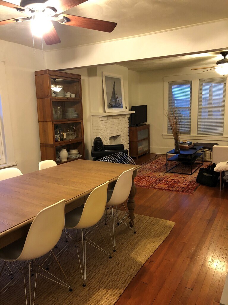 This beautiful apartment is located on a quiet residential street in the much desired Point Breeze neighborhood. Apartment is the entire First floor of a spacious duplex that contains a large living/dining space in addition to two large bedrooms with tons of natural light. Duplex also features a captive room that can be used however you might like-- as a den, an office, or even a third bedroom. Entertain your guests on the large covered front porch. AC window units are available. Laundry is located in the basement. Occasional off-street parking. One cat okay. Located within blocks of several bus lines, within walking distance to Bakery Square, and just two short blocks to Frick Park. You can't beat this amazing location! Pictures reflect both when apartment was lived in and now freshly painted and move-in ready. Schedule to see this apartment TODAY!