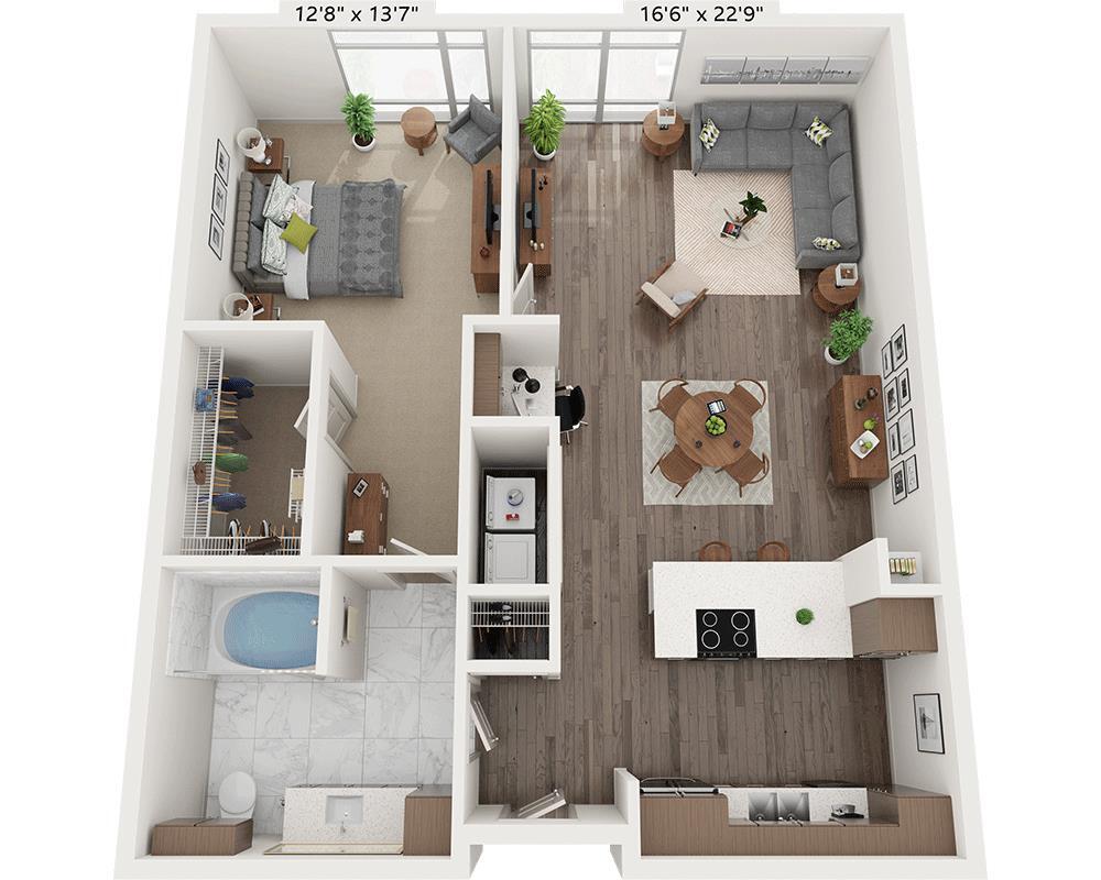 Studio, 1 Bath, 529 sq ftAvailable NowModel Gallery
