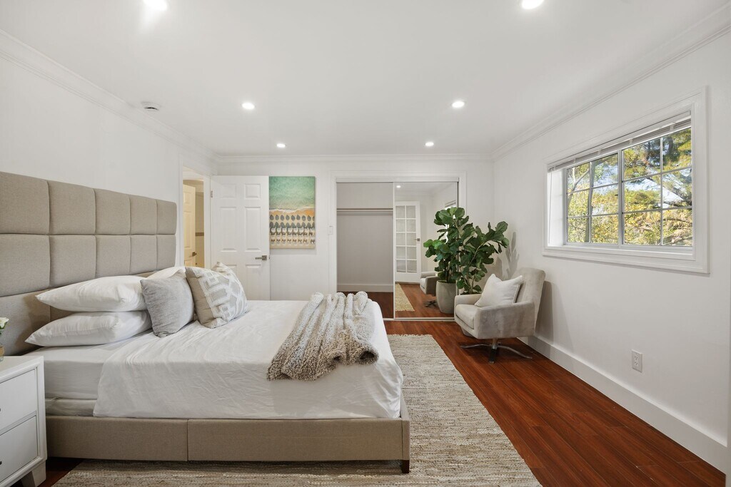 ALL UTILITIES INCLUDED (except internet). Discover this charming & modern 1-bedroom, 1-bathroom ADU in the Hollywood Hills, featuring a private entrance. The kitchen boasts a stylish bar counter, refrigerator, stovetop, and oven. The spacious living areas include recessed lighting and open to a yard with beautiful views. The oversized closet provides ample storage, seamlessly integrated into the layout. Ideally located near Studio City, Universal Studios, and Hollywood, with easy access to the 101 Freeway, this home offers both comfort & convenience in a prime location. Will accept small dogs with $50 deposit. Furniture is not included, the unit is vacant, photos displayed are with staging furniture.
