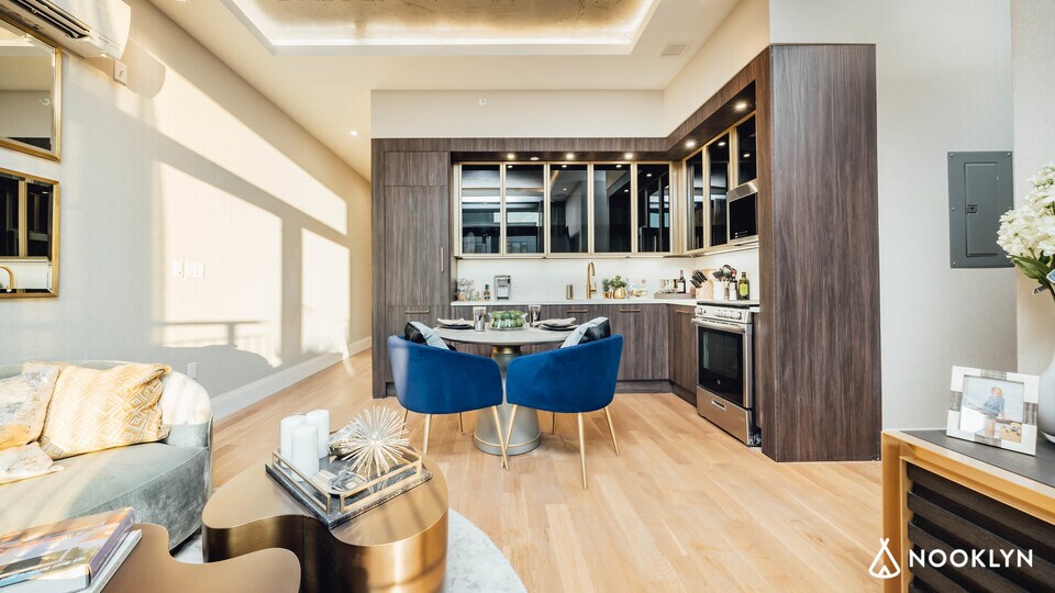 Welcome to 329 Gates Avenue. This building is situated on a prime corner bordering Clinton Hill and Bed-Stuy, with studios, one- and two-bedroom apartments striking a perfect balance between comfort and luxury. Floor-to-ceiling windows flood apartments with natural light, and select units feature their very own private terrace. Each unit is outfitted with artfully crafted fixtures, state-of-the-art appliances, in-unit Whirlpool washer/dryer and the most energy-efficient Central Air system on the market. Amenities* include a landscaped roof with views of the Manhattan skyline alongside a rooftop coworking lounge, a fitness center home to Peloton cycling machines, free wifi accessible in all community spaces, and garage parking. The building is located just minutes away from the G train at Bedford-Nostrand and A/C train at Nostrand Ave. *Amenities Available With Membership