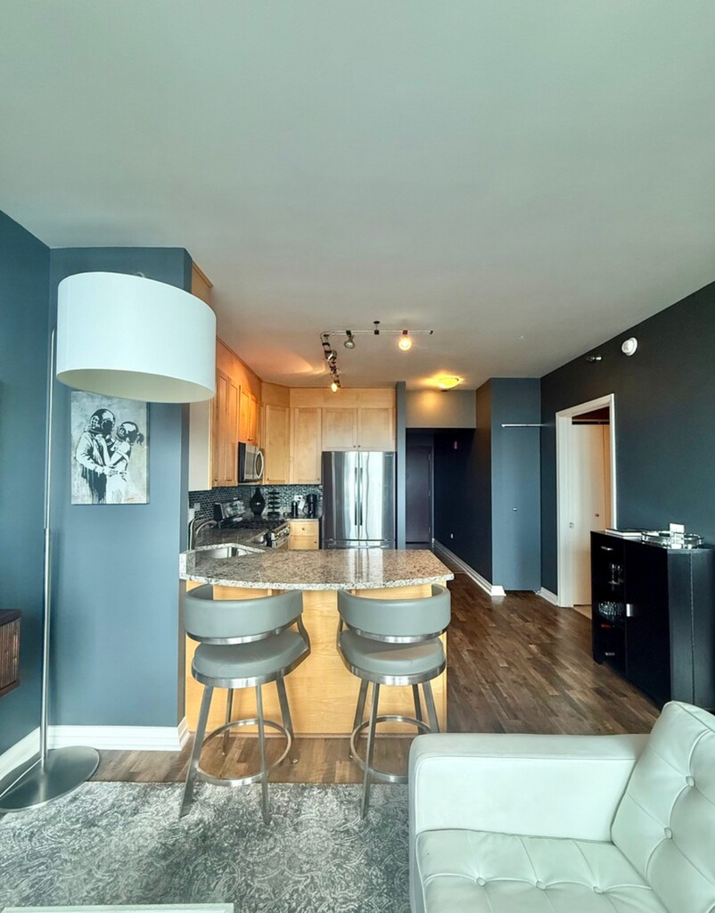 This Ethan Allen designed, fully furnished 1-bedroom, 1-bath apartment at 33 W Ontario offers an incredible opportunity to experience the best of River North living. Positioned on a high floor, this unit is filled with tons of natural light and showcases stunning and unobstructed northern views of the city skyline and Lake Michigan as well as western views through expansive windows. Designed for both comfort and style, this unit features an open-concept layout, sleek hardwood floors throughout, modern stainless steel appliances, upgraded Samsung in-unit washer and dryer, and elegant high-end furniture that make it completely move-in ready. The spacious bedroom includes a custom wall-to-wall closet. The turnkey unit comes stocked with a full entertainment center, PS5, Nespresso machine, plates, cutlery, and everything else you will need to start living easily. Residents get to enjoy full access to resort-style amenities, including 24-hour door staff, secure in-unit package delivery, an outdoor pool, fitness center, grilling and dining terrace, dry cleaners, package room, and additional storage. Located in the heart of one of Chicago's most vibrant neighborhoods, you're steps from world-class restaurants, art galleries, nightlife, boutique shopping, and green spaces. This is luxury, location, and lifestyle all in one. Schedule your private showing today and make this exceptional River North residence your new home.
