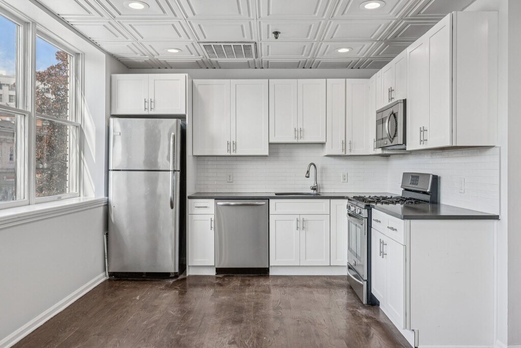 -Dark oak hardwood floors, stainless appliances, quartz counter tops and real hardwood shaker cabinets. -In Unit W/D, and renovated tiled bathroom as well as central heat and a/c. One cat per unit is permitted! -Central to everything Montclair has to offer as well as a quick walk to the train station right down the street!