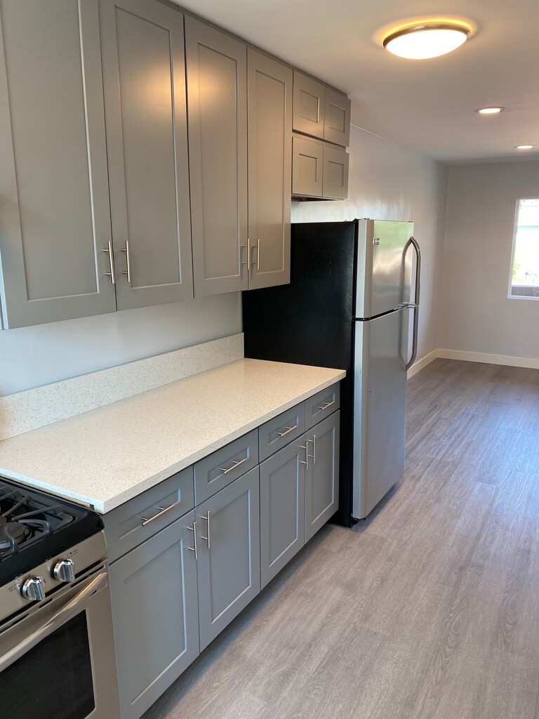 Luxuriously renovated 1 bedroom 1 bath in Hyde Park in a gated building. The unit is completely renovated and features: * New kitchen cabinets * Quartz countertops * Stainless steel refrigerator * Stainless steel stove and hood vent * Stainless steel dishwasher * Stainless steel double sink with chef style faucet * New bathroom with designer tile in shower, new vanity, glass bowl sink and fixtures * New hardwood laminated floors thoughout the unit * New paint throughout the unit * New windows throughout the unit * Recessed LED lighting with dimmer in living room * Ceiling fan in bedroom * Sliding mirrored closet doors * Assigned parking spot (gated with clicker)