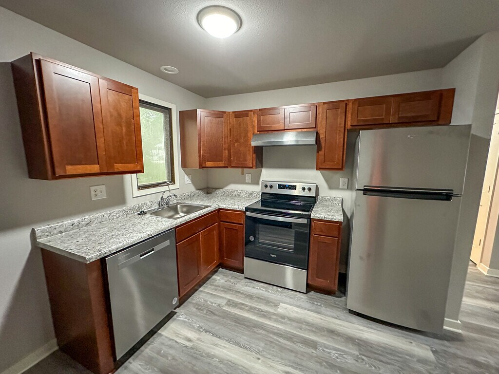 Two bedroom, one bathroom apartment located within 5 blocks of Iowa State University. 3319 Story St. is located near Colorado Junction, including multiple Ames businesses within a short walking distance, such as Pammel Deli and Grocery, Papa Johns, Hy-Vee, and more. These 2 bedroom, 1 bathroom units have 600+ sq ft of living space. The living room and bedroom spaces have carpeted flooring, and the bathroom and kitchen spaces have classic vinyl flooring. The kitchens include a range, dishwasher, refrigerator, and garbage disposal. Central heating and air conditioning is provided in these units. Tenants are provided 2 parking permit spots for 2 bedroom units, on-site coin-operated laundry is located in the basement, and extra locked storage spaces are provided with rent. Tenants pay for electricity, water, and gas. Property Manager will pay for 1 gig ICS internet, garbage pick-up, lawn and snow care. Tenants will need to provide a wifi router, if desired.