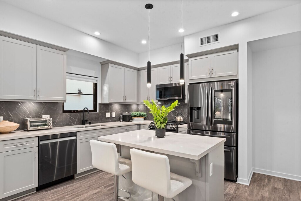 A TALA Residences collection in the heart of Beverly Hills, where Spanish-style architecture meets modern living. This two-bedroom, two-bath residence is available furnished or unfurnished and designed for comfort and ease. The open layout allows for abundant natural light, with a thoughtful balance of functionality and warmth throughout. Located on the second story, the residence features an in-unit washer and dryer, built-in alarm system hookups, stainless steel appliances, contemporary fixtures, and ample permitted street parking. Set within the Beverly Hills School District, with the Four Seasons directly across the street, the property is walkable to Rodeo Drive and the Beverly Hills Triangle, offering access to premier shopping, dining, and entertainment, including The Troubadour and Wally’s. Bristol Farms is just a few blocks away, making everyday errands seamless. Inquire about garage parking spots. Not guarenteed.