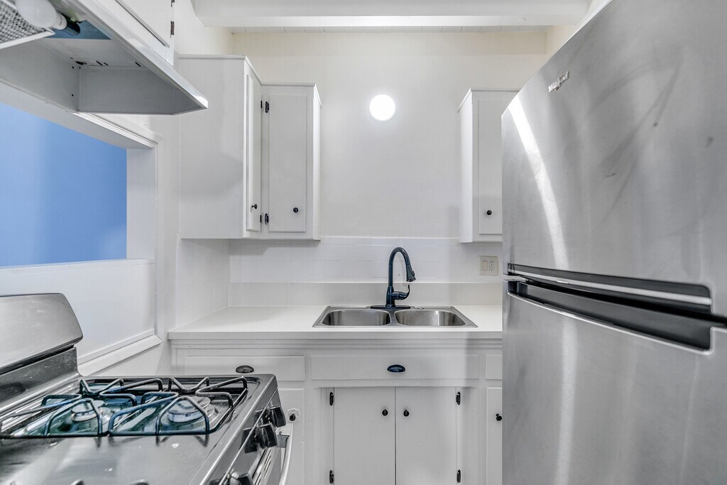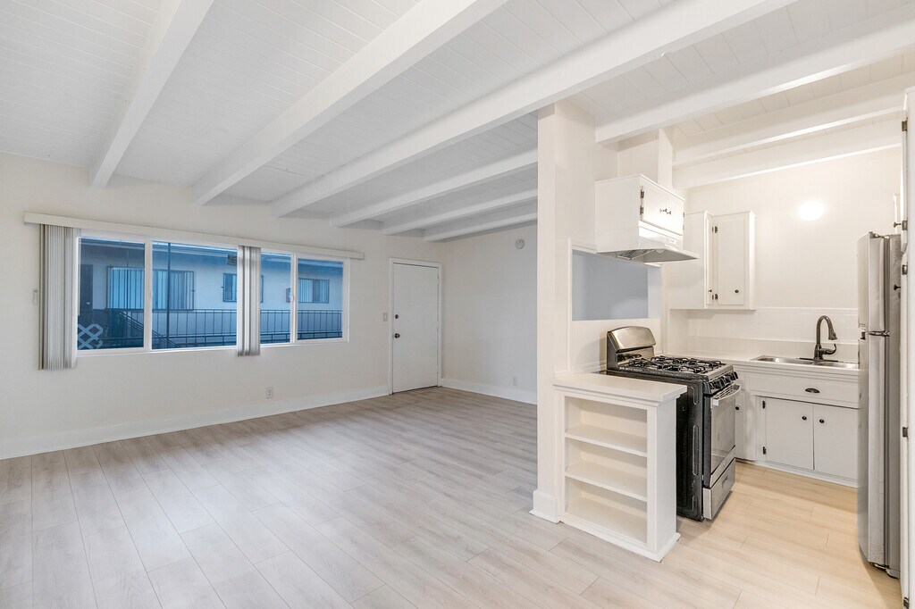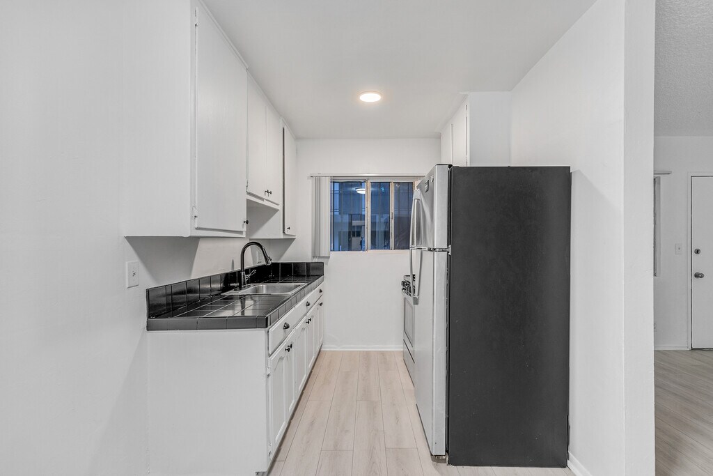 Beautiful newly remodeled modern spacious 1 Bedroom + 1 Bath located in lovely quiet residential neighborhood. Spacious airy unit with plenty of natural light. Unit features open layout design, New modern hardwood-laminate flooring throughout entire unit, newly remodeled large modern kitchen, stainless steel refrigerator, stainless steel stove/oven, sink, large open dining area and living room area. Large windows. Beautiful views. Modern bathroom, large closets, lots of closet/pantry/cabinet space throughout unit, and much more. Prime location, close to many restaurants, entertainment, nearby FWY access, and more. Quiet building. . For any questions, viewings, or info please text or call Steven 323*690*5369 .