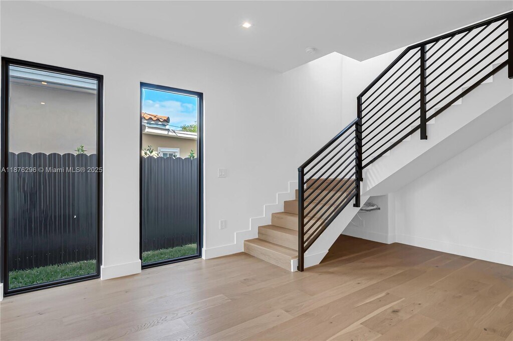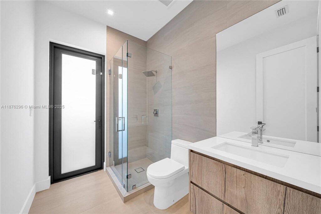 2023 Construction featuring a modern design with a pool, 4 bedroom/4 bathrooms. 2681 square feet of living and 3,401 total. One car garage & 1 outdoor parking space in driveway. Aluminum electric gate for privacy. Open floor plan concept, sleek kitchen featuring italian cabinets with quartz countertops & large island with a waterfall. Stainless steel appliances including electric cooktop, wall oven/microwave combo, dishwasher. Hard wood floors throughout. Master bathroom features double vanity, free-standing tub & large shower. Solar shades throughout. Custom closets installed. Exterior outdoor cameras and security panels all in place. Ring doorbell installed. Close proximity to Coco Walk, Merrick Park shops. Amazing location.
