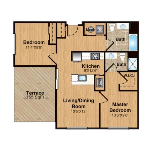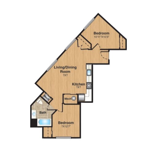 A10 | 1 Bed | 1 Bath - Floorplan 1 2 Bedrooms
