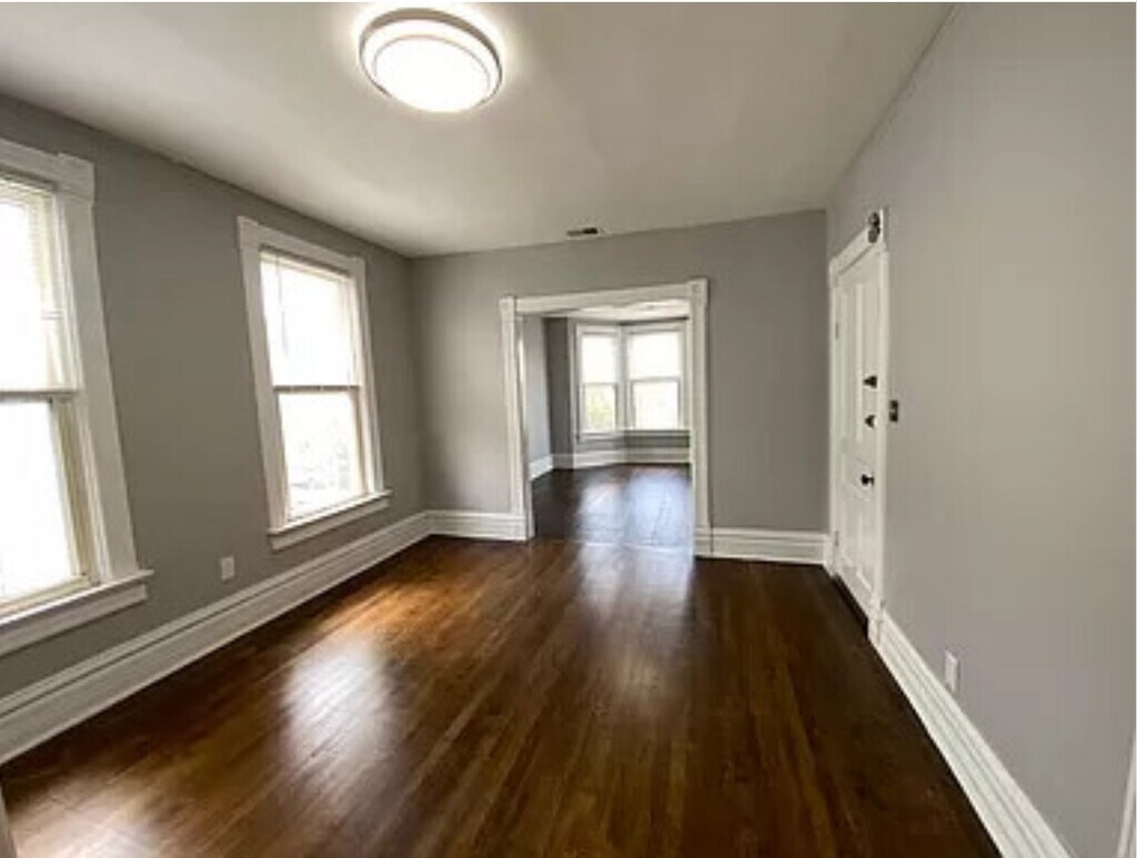 Beautifully rehabbed 3-bedroom 1-bath apartment on the first floor! Walk into a large family room and dining room that is light and bright with a lot of windows. Brand new bathroom with Carrera tile shower stall, new fixtures, high shower head, with a new vanity, toilet, mirror, and lights. The Kitchen is also brand new equipped with stainless steel Samsung appliances, an undermount sick, and quartz counters with backsplash. There is a walk-in pantry off the back of the kitchen. Unit equipped with central heat and air conditioning. First bedroom/office is on the left with a large walk-in closet. Bedroom 2 is off the dining room on the left and bedroom 3 is off the left of the kitchen. Out the back door is an enclosed porch that is a good place to store a few items such as a bike and that leads out to a shared back deck, back yard, and side yard. Laundry washer and dryer is free and accessible in the basement. Located in Avondale on a quiet tree lined street. Very close to grocery stores such as Jewel, Mariano's and around all the new popular restaurants. Location is also just a few minute walk to the Belmont/Kimball blue line EL stop that can take you downtown or to O'Hare as well as minutes from the highway. Avondale, Logan Square, North Center, Wicker Park, Bucktown, Irving park. Awesome Features: • Refinished Hardwood Floors • Quartz Countertops • Brand New Samsung Stainless Steel Appliances • Extra Wide 36’ Double Door Fridge with Ice Maker and Water Dispenser • Central Heat and Air Conditioning • Enclosed Porch AND Large Back Deck • Spacious Side Yard • Deep Undermount Kitchen Sink • Walk-in Closet in Bedroom #1 • Free Laundry in the Basement