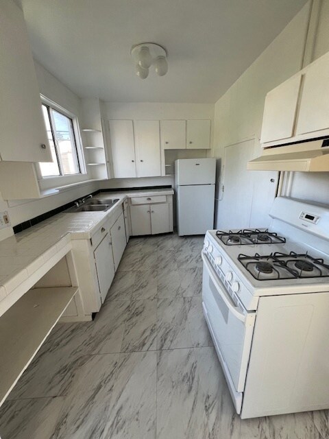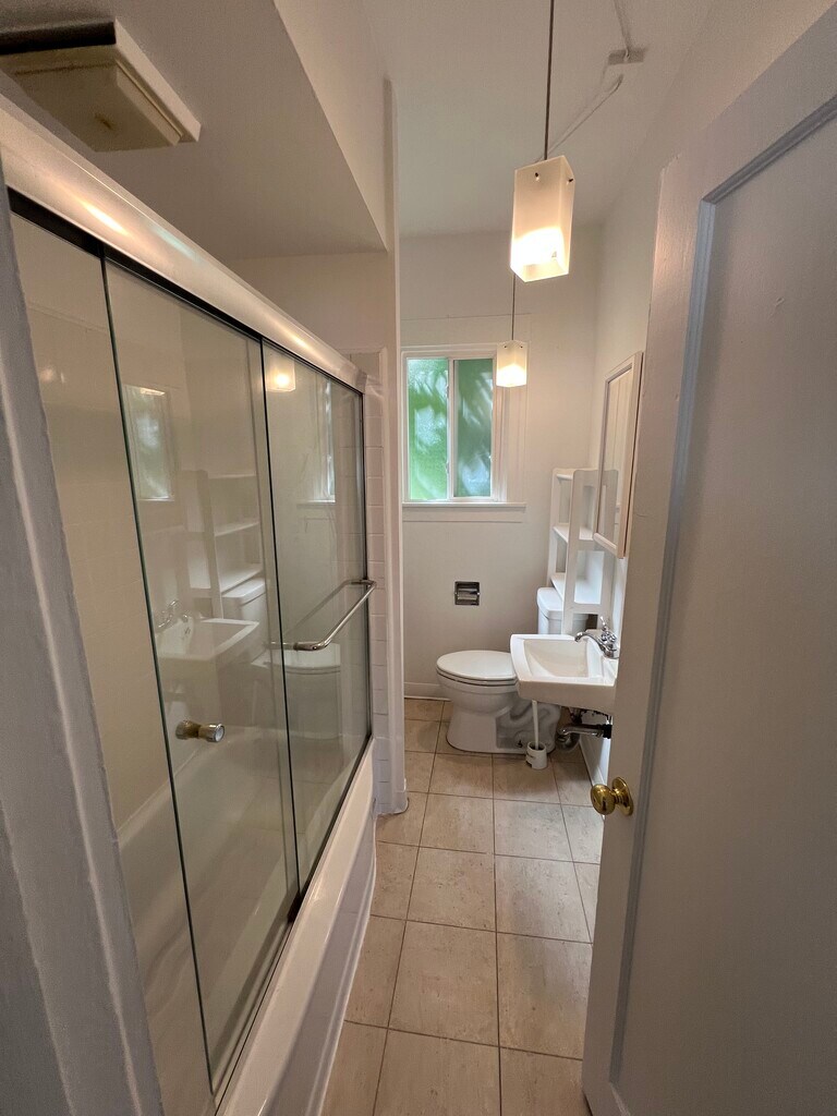 Ground floor ceramic tiled throughout except vinyl for kitchen. All double pane windows. Independent gas heaters in bedrooms and living room. Kitchen with ceramic tiled counter, dishwasher, disposal, gas range, side by side refrigerator-freezer (new, stainless steel), one bathroom ceramic tiled with bath/shower combo with sliding glass doors, another bathroom ceramic tiled with built in shower. Small shed storage in backyard. Private patio.