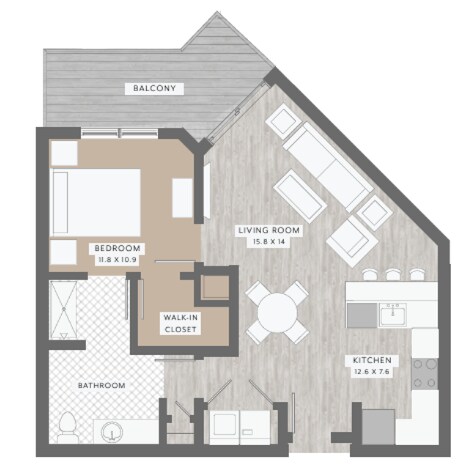 1 Bed, 1 Bath, 580 sq ftAvailable NowModel Gallery