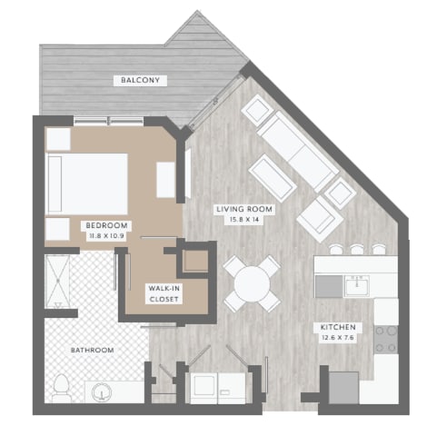 1 Bed, 1 Bath, 713 sq ftAvailable NowModel Gallery