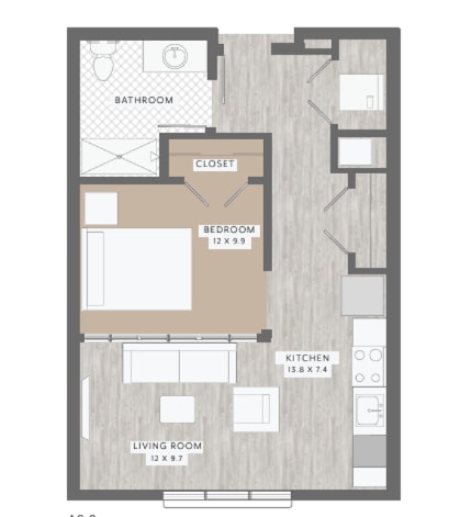 Apartment Model: A0 - BELFrom $1,9161 Bedroom, 1 Bath, 580 sq ftAvailable Now![]()