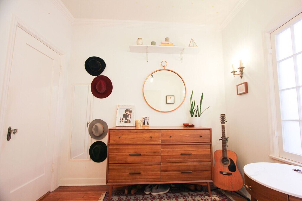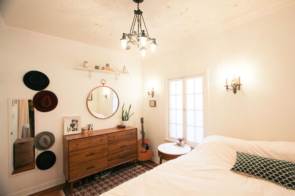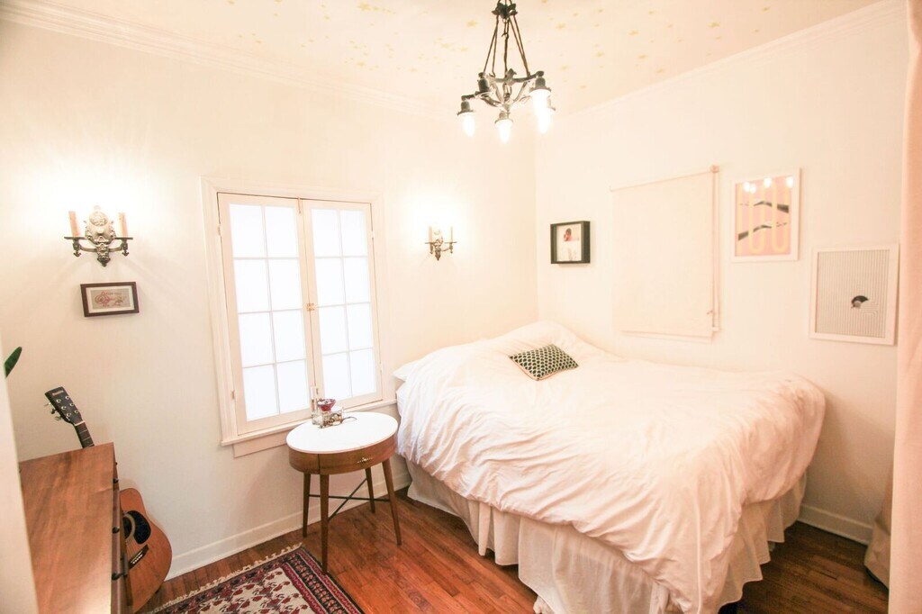 If you love vintage charm and character, this 1-bedroom, 1-bath apartment in Silver Lake might be your perfect new home. The unit is located on the first floor of a beautiful 1920s Spanish-style building that sits on a quiet hill with great light and city views. It also includes a private patio. Inside, you’ll find original hardwood floors, crown moldings, antique chandeliers, and wall sconces that give the space real Old Hollywood appeal.