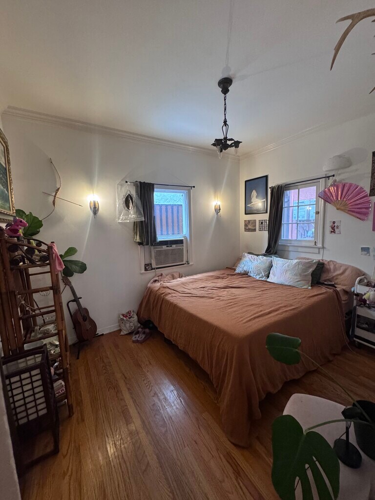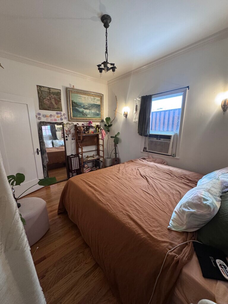 Atop a hill, in the heart of Silver Lake, rests a 1920s Spanish Castle. And within this castle, you will find your new home. Pulsing with the vibrant energy of its surroundings, this 1 Bedroom/1 Bathroom unit offers vintage hardwood floors, crown moldings, antique chandeliers, and wall sconces. The Deco-tiled kitchen features an antique stove and modern refrigerator as well as plenty of bright white cupboard space and a pass-through window. The bathroom offers hexagonal tessellation tile, a French pedestal sink, and European sunken bath/shower combo. This upper-level unit also has shared patio. Walk out the doors of your new home, admire the city views from your elevated position, and enter a neighborhood defined by its commitment to health and mindful living. By foot or bicycle, you can easily access boutiques such as Aesop or the bi-weekly Silver Lake Farmer’s Market. Become a regular at Same Same Thai, world-renowned Taix, or Moon Juice. Close those rings on the Rainbow Staircase or the other hidden stairs of Silver Lake. If you need modern conveniences, a mini-Target recently opened nearby, and Trader Joes, Erewhon, and Lazy Acres are just minutes away. Or jump in your car and drive 5 minutes to Los Feliz Village and Atwater Village for more shopping and dining options. An easy 15–20-minute drive to downtown L.A., Pasadena, or Dodger Stadium, you are centrally and conveniently located in a charming and trending haven that has been likened to New York’s Soho. Washer/Dryer on site Optional Parking Pets Welcome Unfurnished