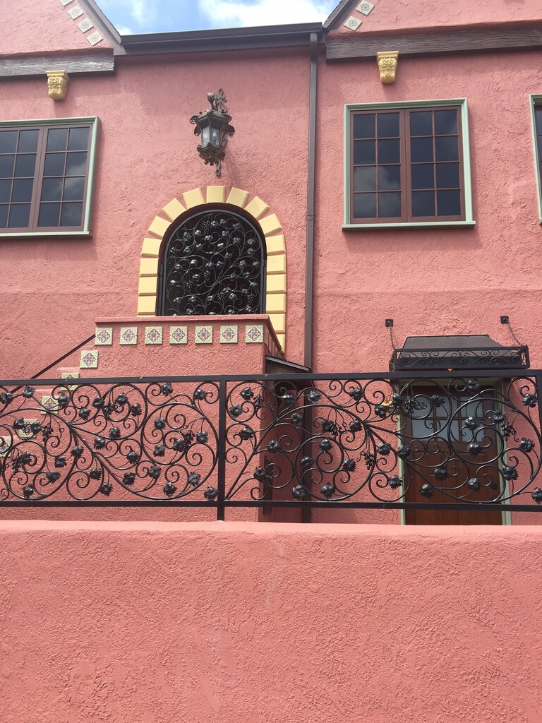 • 1 Bedroom / 1 Bathroom • 1920s Spanish Castle architecture • Vintage hardwood floors and crown moldings • Antique chandeliers and wall sconces • Deco-tiled kitchen with antique stove, stainless refrigerator, bright white cupboards, and wet bar • Bathroom with hexagonal tessellation tile, French pedestal sink, and European sunken bath/shower combo • Enclosed gated patio