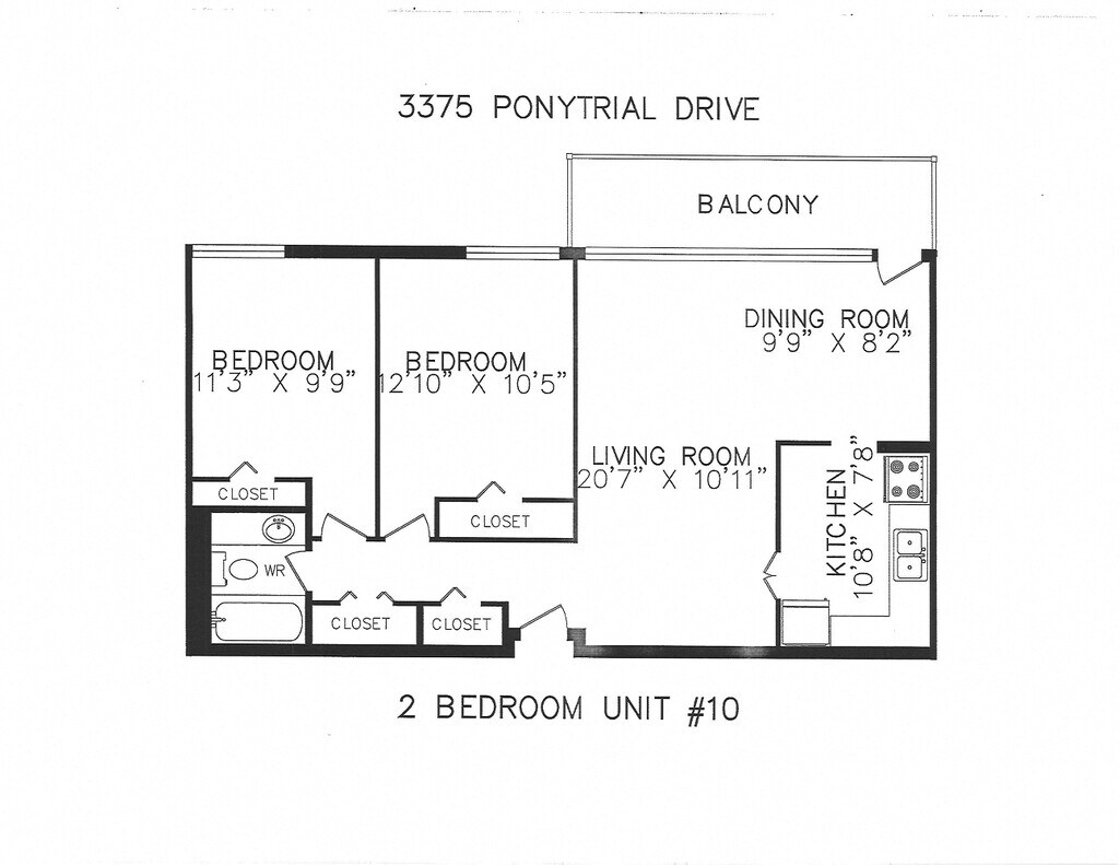 Availability Date Unit Sq Ft Unavailable 3 bedroom, 1 bathroom, balcony, end of the hallway 995 sq ft Model Amenities and Features