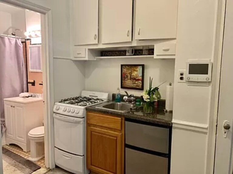 A- Studio with eat-in kitchen. Tile Bathroom. Live-In Super. Includes heat and hot water. Extra incentive, second month's rent-free. Contact the owner directly. Close to Subway. 4D-Lovely large studio with eat-in kitchen and new refrigerator. The living area is bright, 12 by 20 feet. Skylight in a tiled bathroom. Two closets. Live-in Super. Available Immediately. Includes heat and hot water. Extra incentive, second month's rent-free. Contact the owner directly.