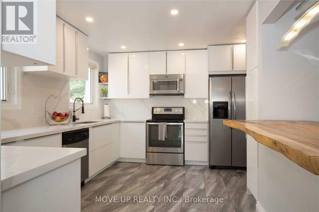 Beautiful residence nestled on a quiet street in the heart of the family-friendly Palmer community. This immaculate home boasts an array of modern finishes and a stunning open-concept layout. The spacious grand chef's kitchen features quartz countertops and backsplash,stainless steel appliances,and a breakfast bar,flowing seamlessly into the cozy dining area and inviting living room. Filled with an abundance of natural light,these spaces are perfect for entertaining and family gatherings. Pot lights throughout the living and dining areas. Three spacious bedrooms and two renovated full bathrooms. The finished basement includes a large rec room and den,ideal as a fourth bedroom or home office,with convenient separate access. Enjoy sunrise mornings and alfresco dining in a beautiful backyard with a cozy patio overlooking mature trees. Excellent location: steps to schools,shopping,public transit,community center,playgrounds,and parks. Minutes to the highway and a short drive to the GO station. ** This is a linked property.** (id:52069) ID#: 1680290