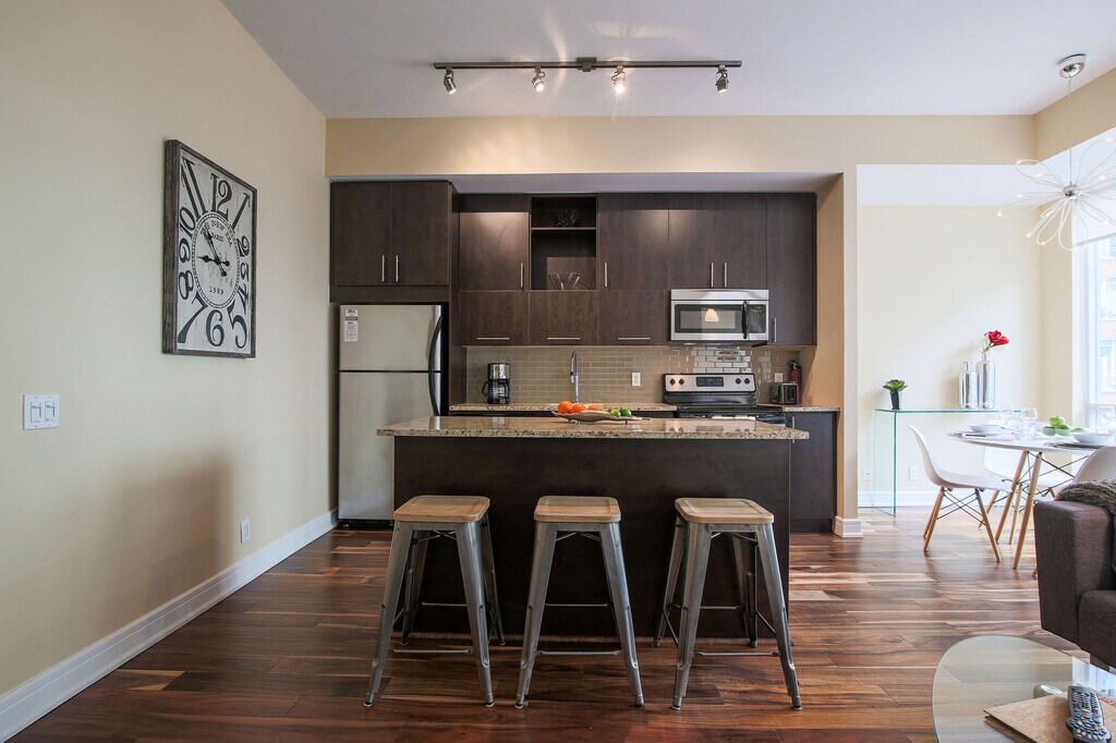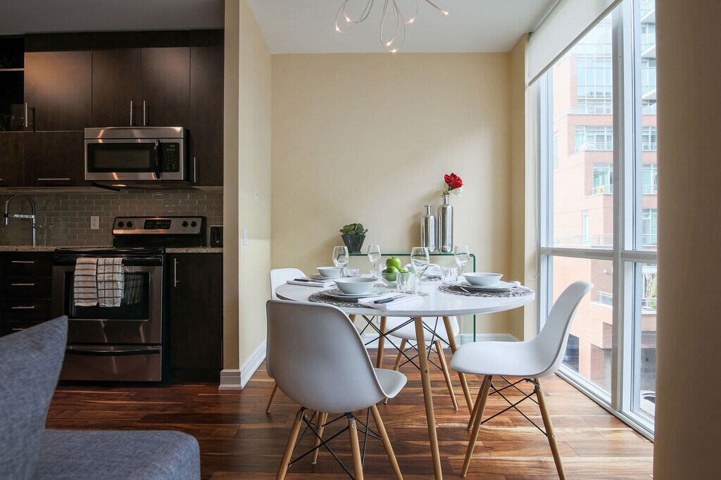 Conveniently located in Old Toronto, this modern apartment is just steps away from the St. Lawrence Market, Distillery District, and the Financial District. With easy access to Toronto's transit system and the Don Valley Parkway, this apartment offers a quiet neighborhood setting while overlooking St. James Park and the downtown core. This large and bright suite features unlimited high-speed internet, a home phone with free local calling, a cable package, and an in-suite washer and dryer. Enjoy the convenience of a fully equipped eat-in kitchen with a gas stove, and relax on the balcony or terrace. The apartment also includes a healthy bed system by SilverClear and complimentary bi-weekly housekeeping. On-site parking is available for your convenience. The apartment offers 24-hour security and an emergency line for your peace of mind.