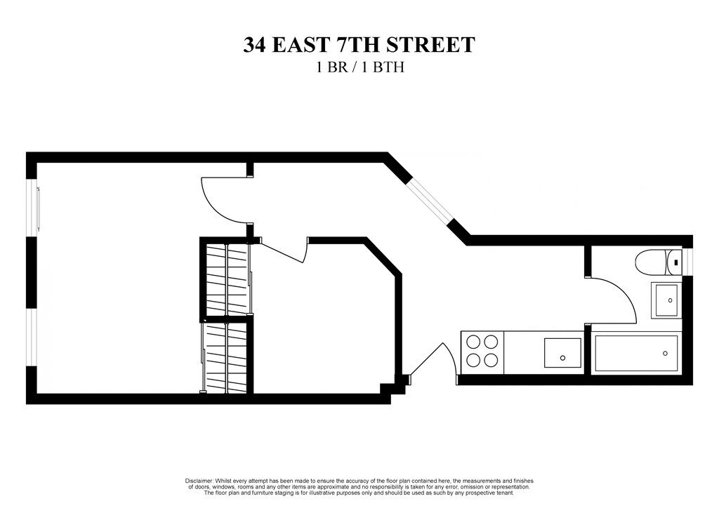 34 EAST 7TH STREET - 1 BR / 1 BATH - Floorplan 1 2 Bedrooms