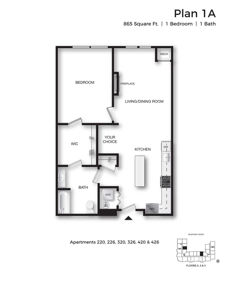 1A - Floorplan 1 Apartment Unit: 420Apartment Model: 1A$2,8671 Bedroom, 1 Bath, 865 sq ftAvailable NowFloorplan 1B