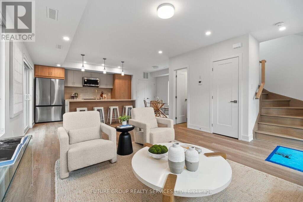 Welcome to 34 Poplar Ave,Unit 5,a brand-new,garden-level suite in a boutique,newly built multiplex in the heart of a quiet,family-friendly pocket. This luxury 3-bedroom,2.5-bath home offers over 1,150 sq. ft. of sun-filled living space across two thoughtfully designed levels,with high ceilings,oversized windows,and upscale finishes throughout. The open-concept main floor features a custom kitchen with a quartz waterfall peninsula,soft-close cabinetry,stainless steel appliances,and under-cabinet lighting,flowing seamlessly into a bright living and dining area that opens to your private garden oasis. In-suite laundry,central heating and air conditioning,smart locks with app-controlled keyless entry,and exterior cameras provide everyday comfort,security,and convenience. Upstairs,the primary suite feels like a true retreat,with a custom built-in closet system (double rods,shelving,and drawers) and a spa-inspired ensuite. Two additional large bedrooms provide versatile space for kids,overnight guests,or a quiet home office. With an individually metered,100% electric design and high-performance insulation,you'll enjoy efficient climate control and lower utility costs. Located just steps from daily essentials,34 Poplar Ave offers a relaxed community vibe with convenient access to Kipling GO and TTC Subway Station,Cloverdale Mall,and major highways-delivering a rare blend of urban convenience,peaceful residential living,and private garden-suite charm. (id:63800) ID#: 2254423