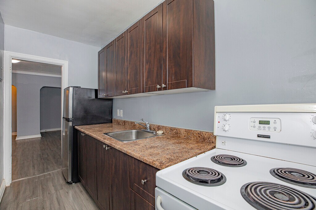 PROMOTION 1 MONTH RENT FREE! Located in a vibrant and welcoming community, this home offers easy access to major highways, public transit, parks, and local shopping. Enjoy the perfect balance of comfort, convenience, and community. Features: High ceilings Hardwood and ceramic tiles throughout Newly renovated Laundry on-site Fridge and stove Responsive, proactive and respectful management Utilities such as heat and water are included! NOTE: Unit finishes will differ from photos provided and may not be exactly as shown. Don't miss this wonderful opportunity to live right in the middle of this charming community!