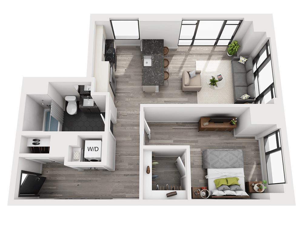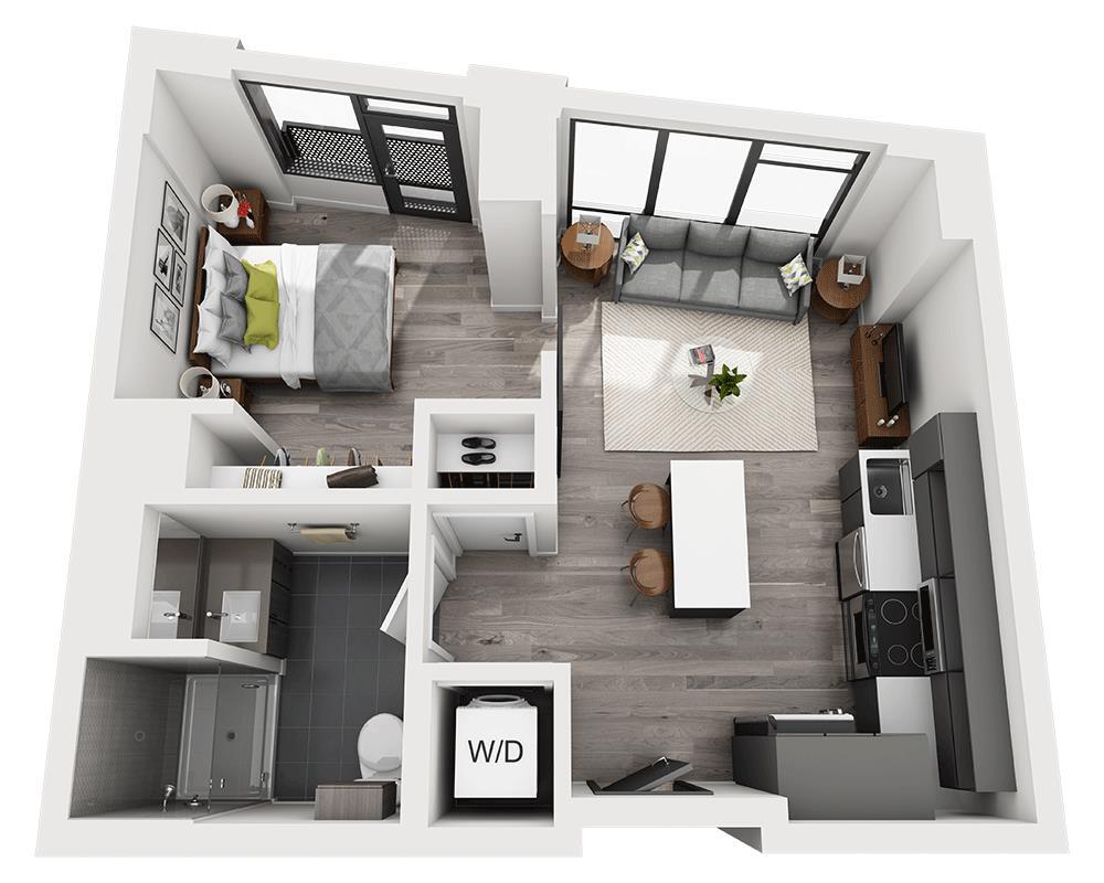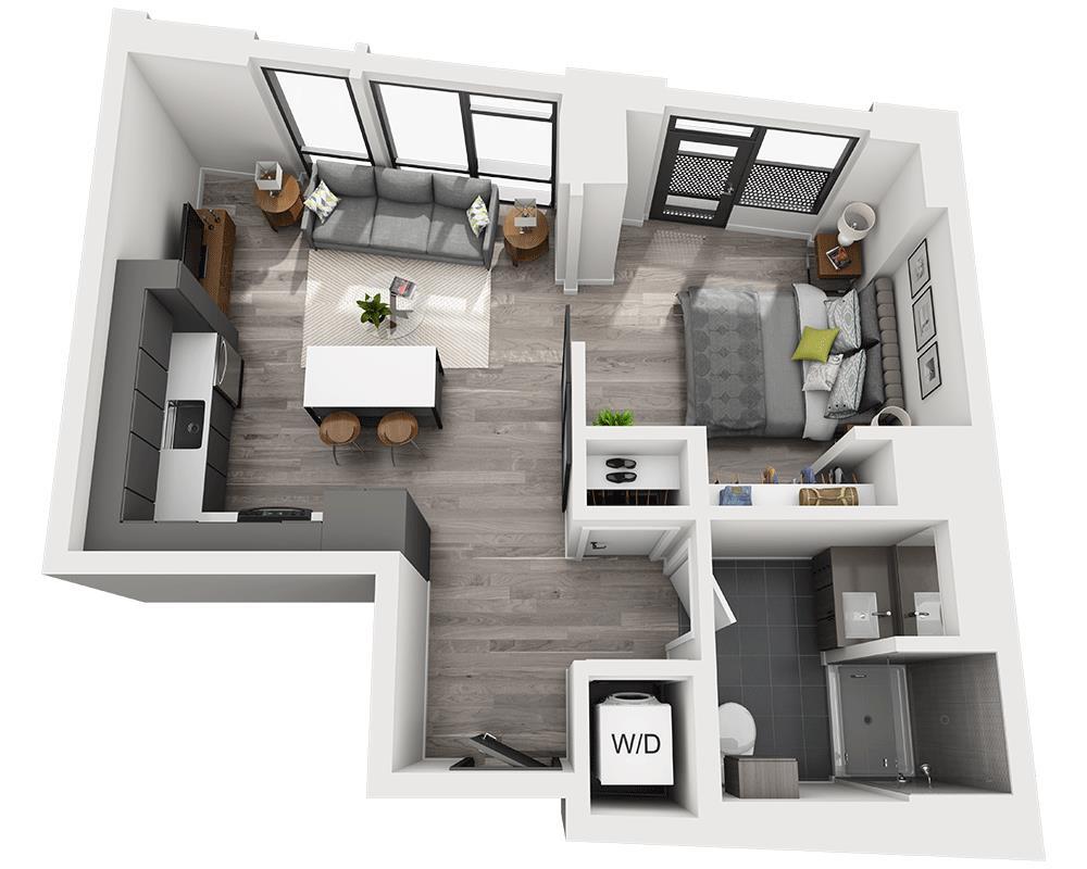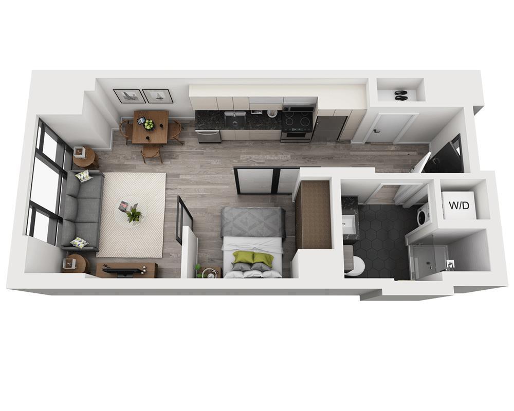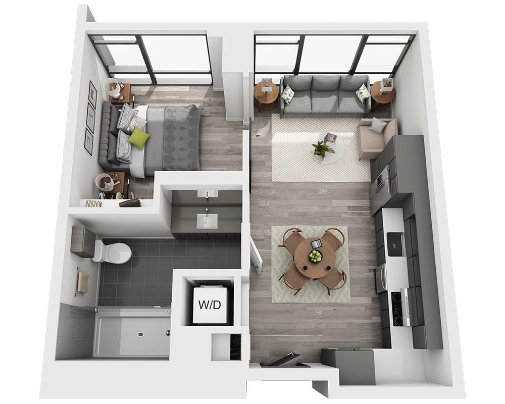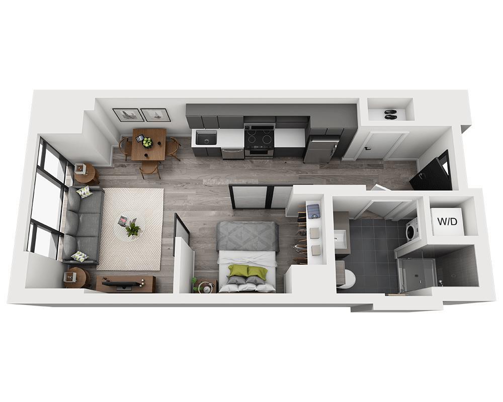 Studio, 1 Bath, 464 sq ftTotal Monthly PriceAvailable NowModel Gallery