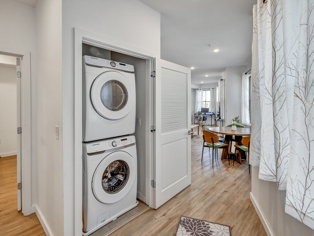 BRAND NEW 2021 build. All brand new EVERYTHING. Spacious closets Sunrise/Sunset views Rooftop / Sky deck Fitness Room Multiple layouts available Extra large windows that allow for natural light Stainless steel appliances Washer and Dryer in unit Video Intercom Wifi thermostats GIG-XERO internet Sound proof and padded interior walls Smart key lock system with finger control Small pets allowed