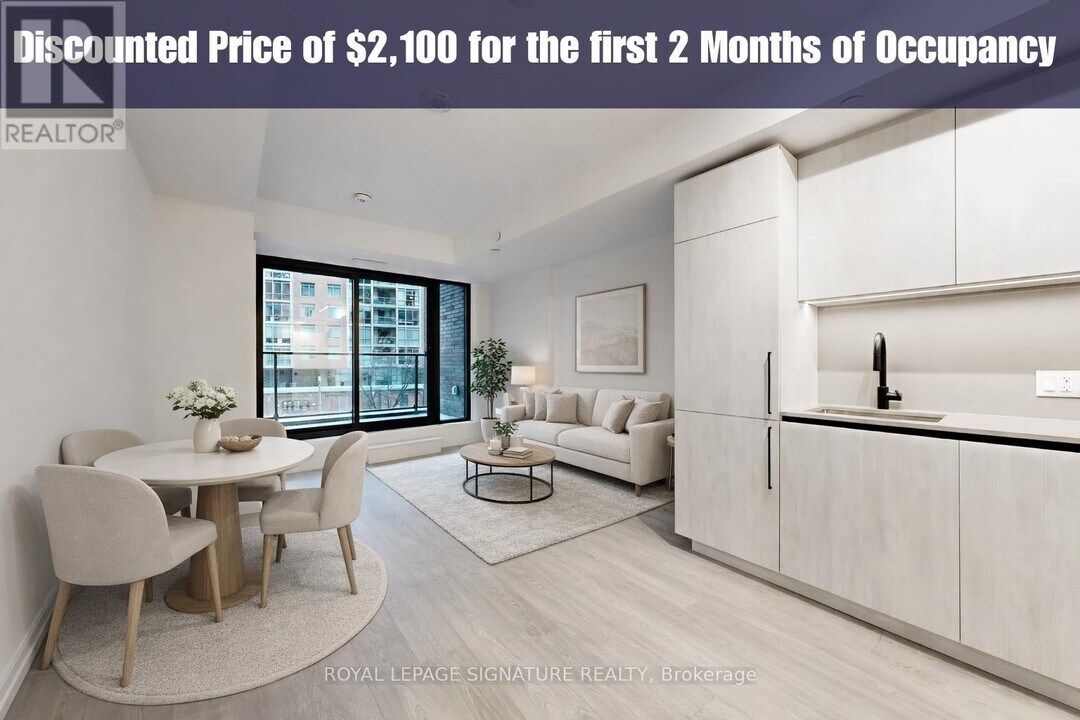 > Welcome to The Goode,the newest landmark residence in the historic Distillery District. This brand new 2-bedroom,2-bath suite blends clean modern design with thoughtful comfort and function. An open-concept layout,smooth 9' ceilings,and wide plank flooring. The kitchen features integrated panel-ready appliances and sleek modern cabinetry. The primary bedroom includes a spacious closet and a contemporary 4-piece ensuite. A second bedroom offers flexible use as a guest suite,home office,or studio. Step onto your private balcony to enjoy fresh air above the character and charm of the Distillery. Residents of The Goode enjoy access to beautifully designed amenities,including a welcoming lounge,rooftop terrace spaces,state-of-the-art fitness facilities,and secure building access. Located just steps to cobblestone pedestrian lanes,waterfront trails,farmers' markets,cafes,galleries,and transit - this is where culture and convenience meet.A fresh,stylish home in one of Toronto's most iconic neighbourhoods.Urban living - elevated. (id:52069) ID#: 2066111