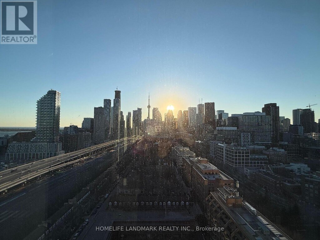 Welcome to The Goode by Graywood,where modern design meets the vibrant energy of Toronto's historic Distillery District. Positioned on one of the last developable parcels adjacent to this iconic heritage neighbourhoud,The Goode offers a rare blend of contemporary living and timeless character. This stunning 22nd floor 1-bedroom + den suite features a clear,west-facing view of the city skyline including a direct sightline to the CN Tower,filling the space with beautiful natural light and breathtaking sunset vistas. The versatile den is ideal for a home office,study,or guest space. Inside,enjoy 9' ceilings,floor-to-ceiling windows,and a sleek modern kitchen with quartz countertops,backsplash,and integrated appliances. The open-concept layout maximizes space,light,and flow,creating an inviting setting to live,work,and unwind. Residents enjoy a full suite of premium amenities including a state-of-the-art fitness centre,yoga studio,co-working lounge,outdoor pool,BBQ terrace,party and games rooms,and more. Just steps from the cobblestone charm of the Distillery District,St. Lawrence Market,waterfront trails,and Corktown Common Park. Excellent transit access with streetcar service and the future Ontario Line,plus easy connections to the DVP,Gardiner Expressway,and Union Station. (id:63800) ID#: 2059415